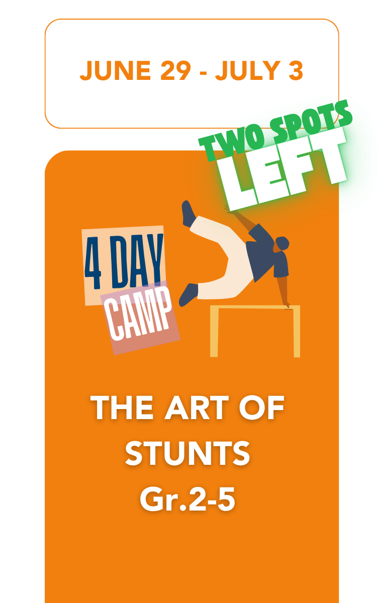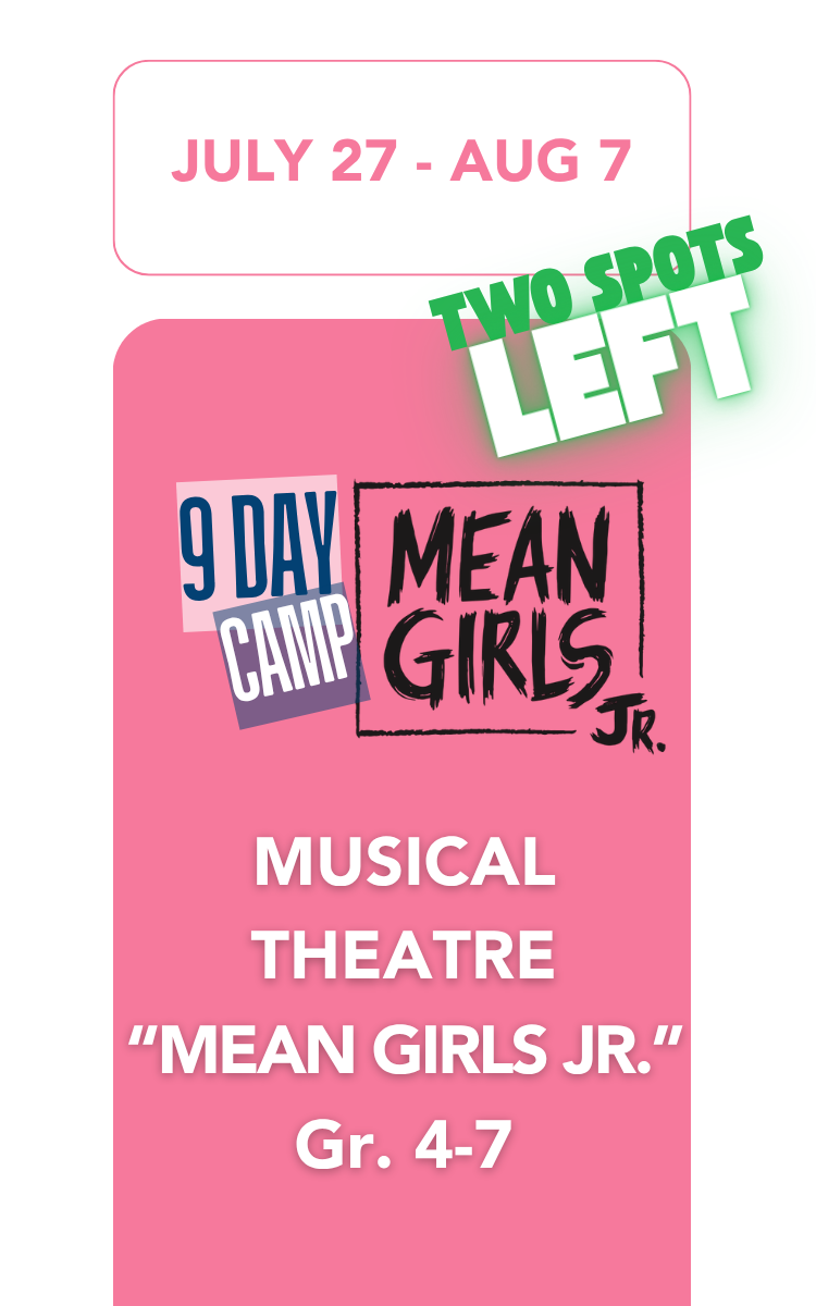 Generations Performing Arts Centre Summer Camp is an inclusive performing arts experience for students of all skill levels, identities and bodies, ages 4–13. Each day, campers explore their creativity, build confidence, and most importantly—have fun in a supportive, non-competitive environment rooted in community and creation. Through performing arts, media arts, parkour, aerial and martial arts, students are encouraged to shine both in their creative moments and performing moments, while forming meaningful connections with their fellow campers, LITs (leaders-in-training) and faculty.
